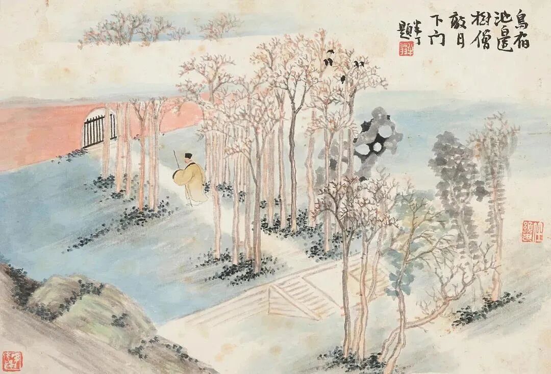 这十二开册页,每一幅都是对前人诗意别出心裁的诠释。任预以灵动且富有想象力的笔触,将诗词中的抽象情感具象化。或是勾勒出山川的壮丽,让观者仿若置身于古人笔下的山水之间,感受那份远离尘世的宁静与悠远;或是描绘出人物的细腻神态,将诗词里的人物情感生动呈现,让人不禁为画中人的喜怒哀乐而动容。