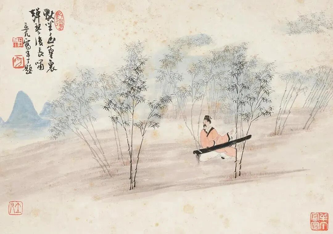 (十一)獨坐幽篁裡,彈琴復長嘯。立凡寫半丁題。